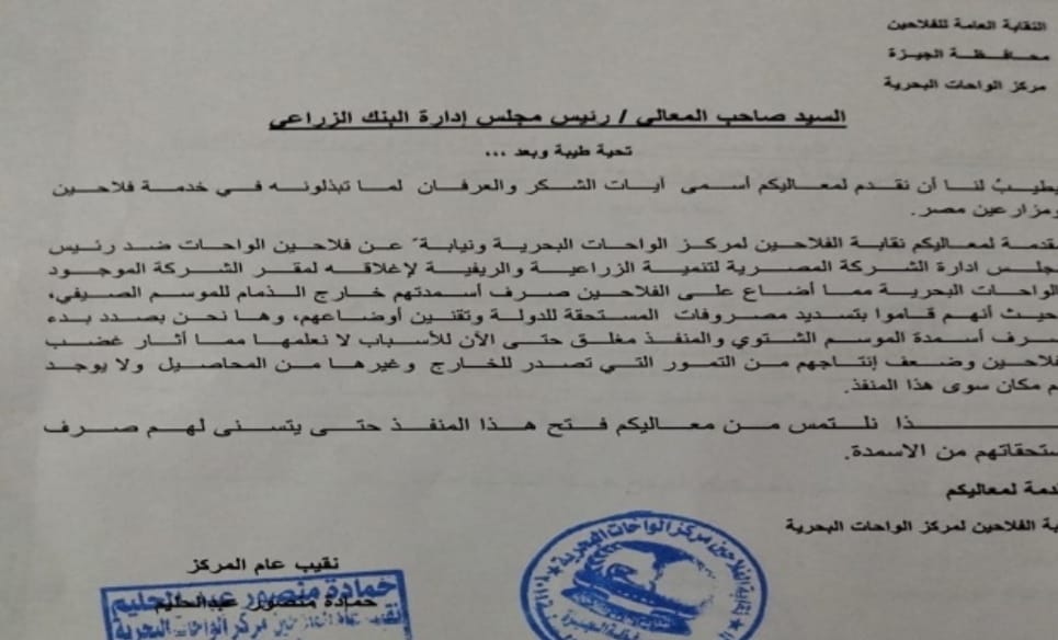 وأوضح أن هذا الإغلاق تسبب في فقدان الفلاحين فرصة صرف أسمدتهم خارج الزمام للموسم الصيفي، رغم سدادهم جميع المصروفات المستحقة وتقنين أوضاعهم.