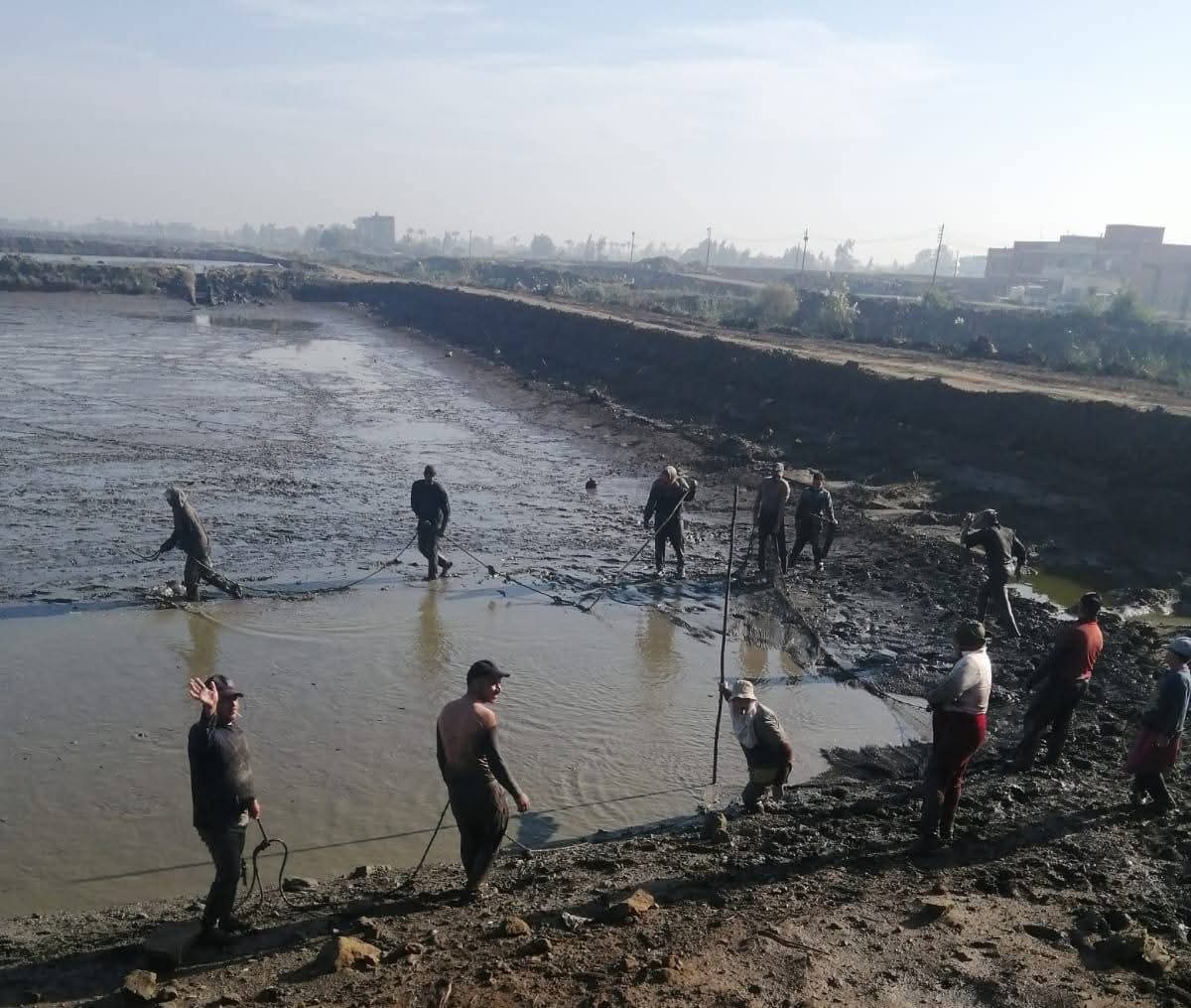 تنمية البحيرات والثروة السمكية يتابع أعمال الحصاد بمزرعة المنزلة السمكية
