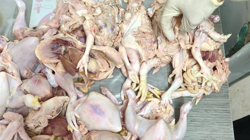 تحركت الحملة فور ورود معلومات بشأن عرض ترويجي أثار الشكوك حول جودة المعروض. وبالتنسيق مع الطب البيطري، جرى فحص الكميات المضبوطة، حيث تبين وجود بقع زرقاء وتورمات ظاهرة على الدواجن.