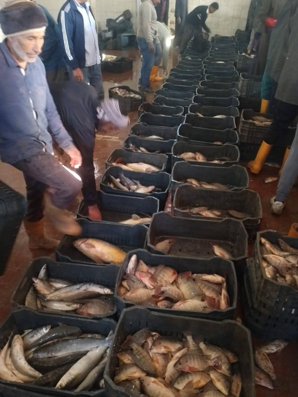 ١٠٤ أطنان من الأسماك المتنوعة في أحدث أعمال الصيد بمزارع جهاز حماية وتنمية البحيرات